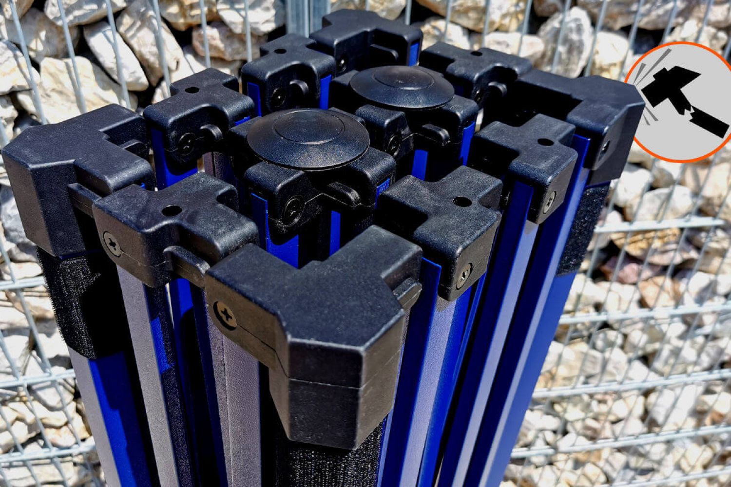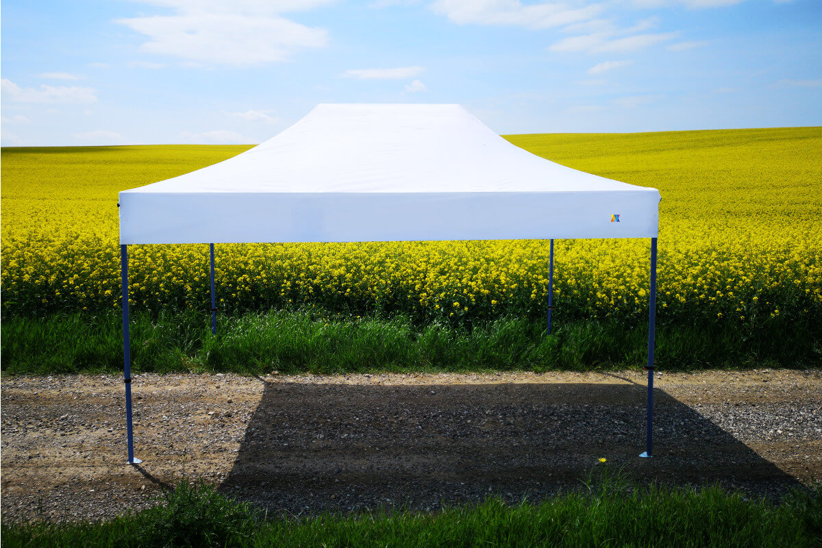 Rozkładanie i składanie namiotów reklamowych jest łatwe, jednym ruchem dopasujesz konstrukcję do żądanej wysokości. Korzystając z kontroli wysokości dachu, możesz dostosować dach do swoich potrzeb. Dyskretny kolor namiotu dopasowuje się do otoczenia, a plandekę możesz dostosować np. do marki swojego produktu. Z doświadczenia wiemy, że projekt namiotu jest równie ważny jak jakość. Wyróżniamy się na tle konkurencji granatowym kolorem konstrukcji.