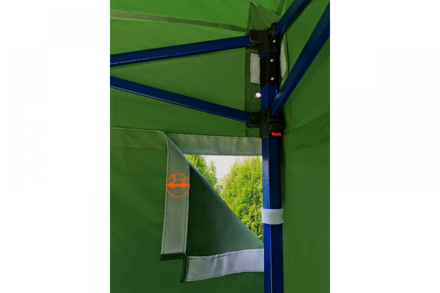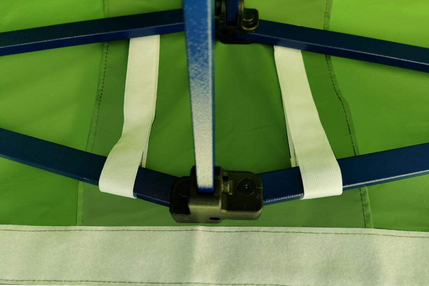 - Materiał dachu: 100% wodoodporna tkanina poliestrowa, odporna na rozerwania, powleczona warstwą PVC, odporna na promieniowanie UV (330 gr/m2)