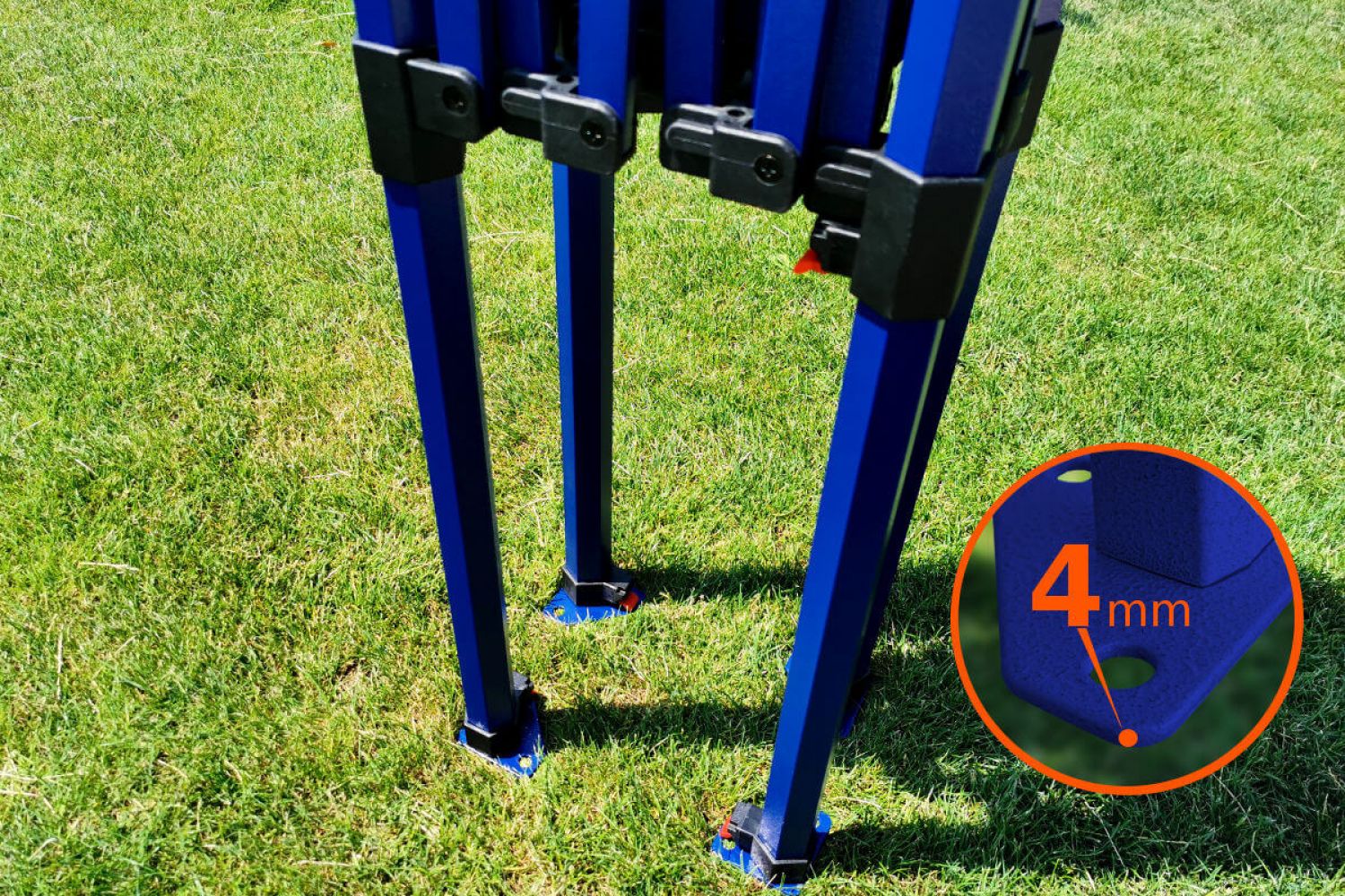 Namiot reklamowy z nadrukiem daje nieograniczone możliwości. Niezależnie od tego, czy zdecydujesz się na używanie namiotu prywatnie, czy zawodowo, będziesz bardzo zadowolony z efektu. To namiot stalowy najwyższej jakości. Solidna konstrukcja z ciemnoniebieskimi profilami jest odporna na korozję i zapewnia długą żywotność elementów namiotu.