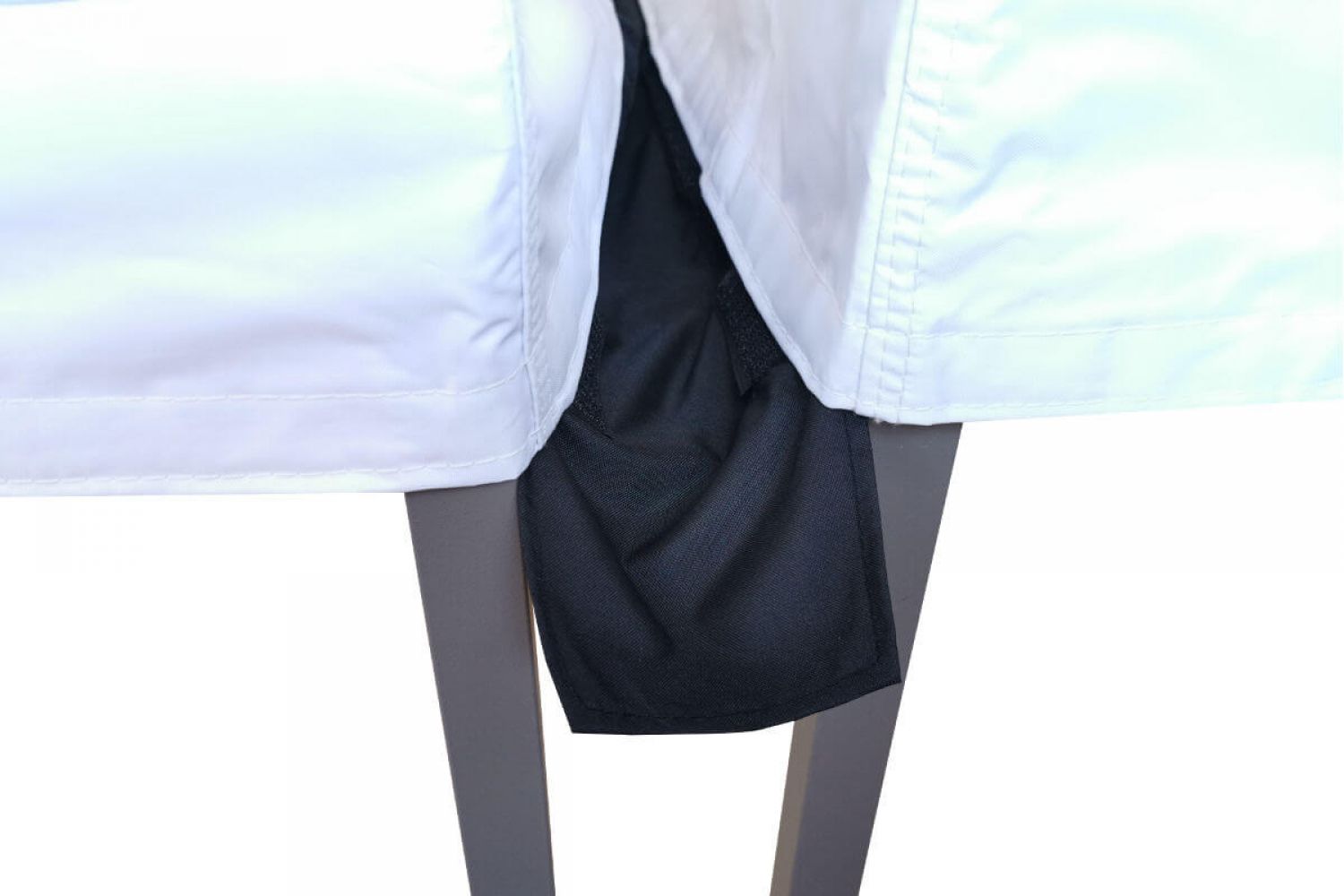 Montaż jest bardzo łatwy. Wystarczy przymocować rynne rzepem do namiotu, które nasze namioty mają na całym obwodzie dachu.